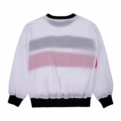Krekliņš ar garām piedurknēm, caurspīdīgs audums.Materiāls: 1. 100% poliesters; 2. 95% kokvilna, 5% elastāns.Ražotājs: Itālija, J'aimé