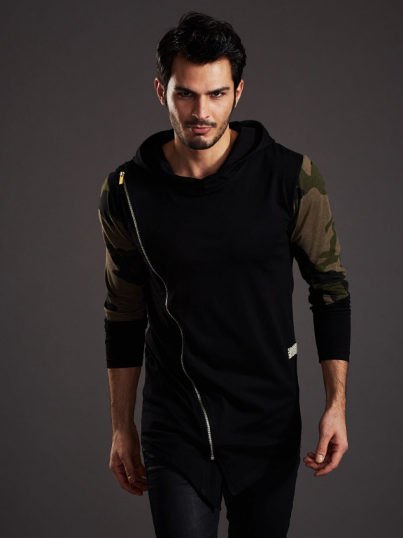 Pagarināts džemperis ar garām piedurknēm, kapuci, asimetrisku rāvējslēdzēju.Materiāls: 100% kokvilna.Ražotājs: MECHANICH