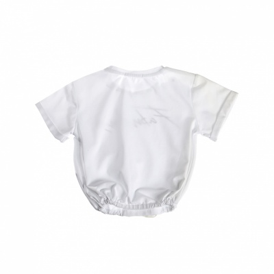 Krekliņš ar īsām piedurknēm un uzrakstu.
